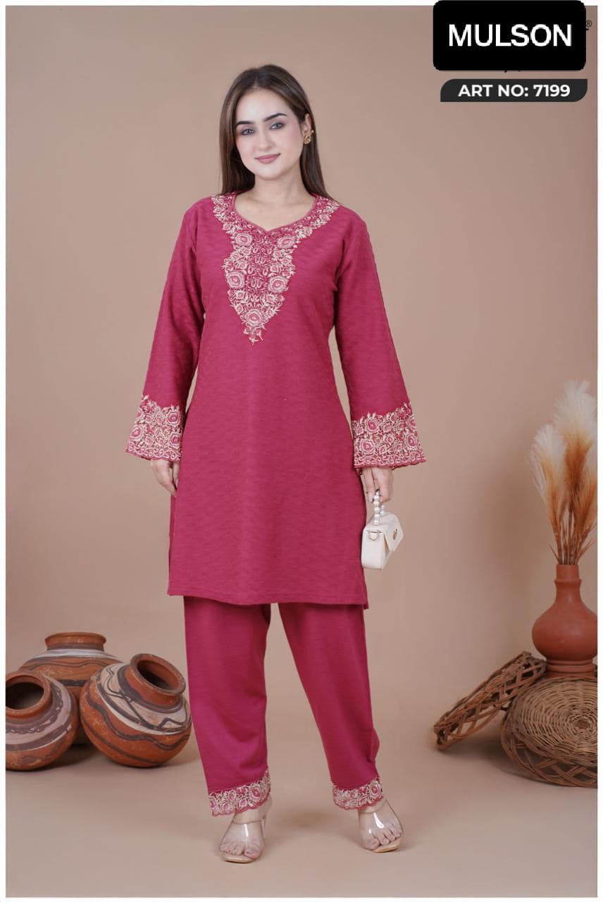 Add a touch of timeless elegance to your wardrobe with Mulson a beautifully crafted kurta designed for women who appreciate rich ethnic aesthetics. The deep rose shade is enhanced with intricate thread embroidery on the neckline and sleeves,