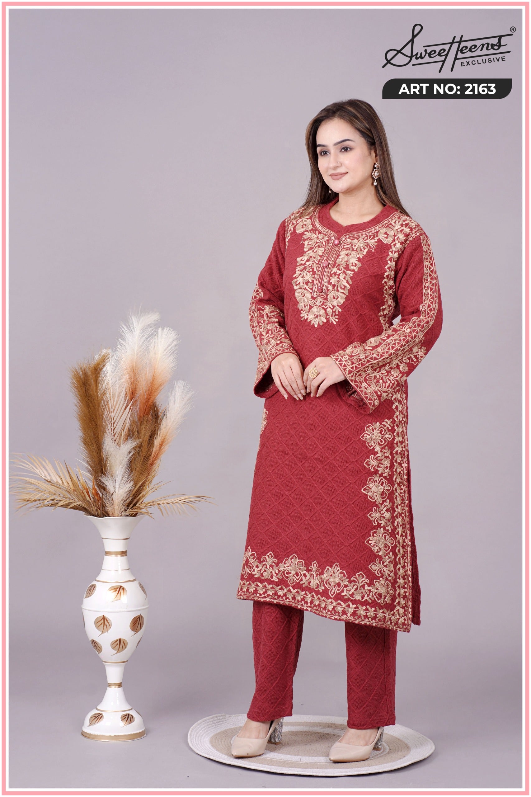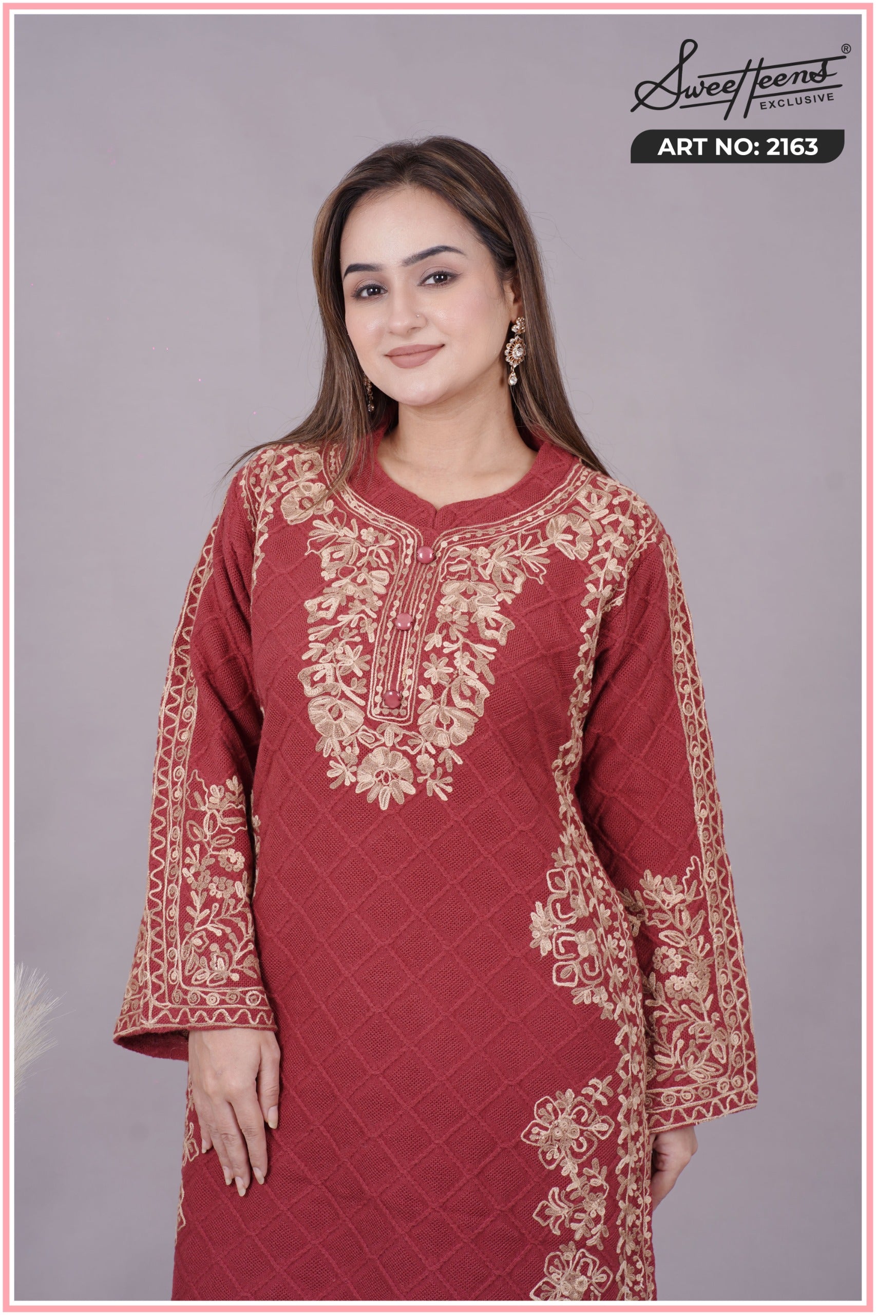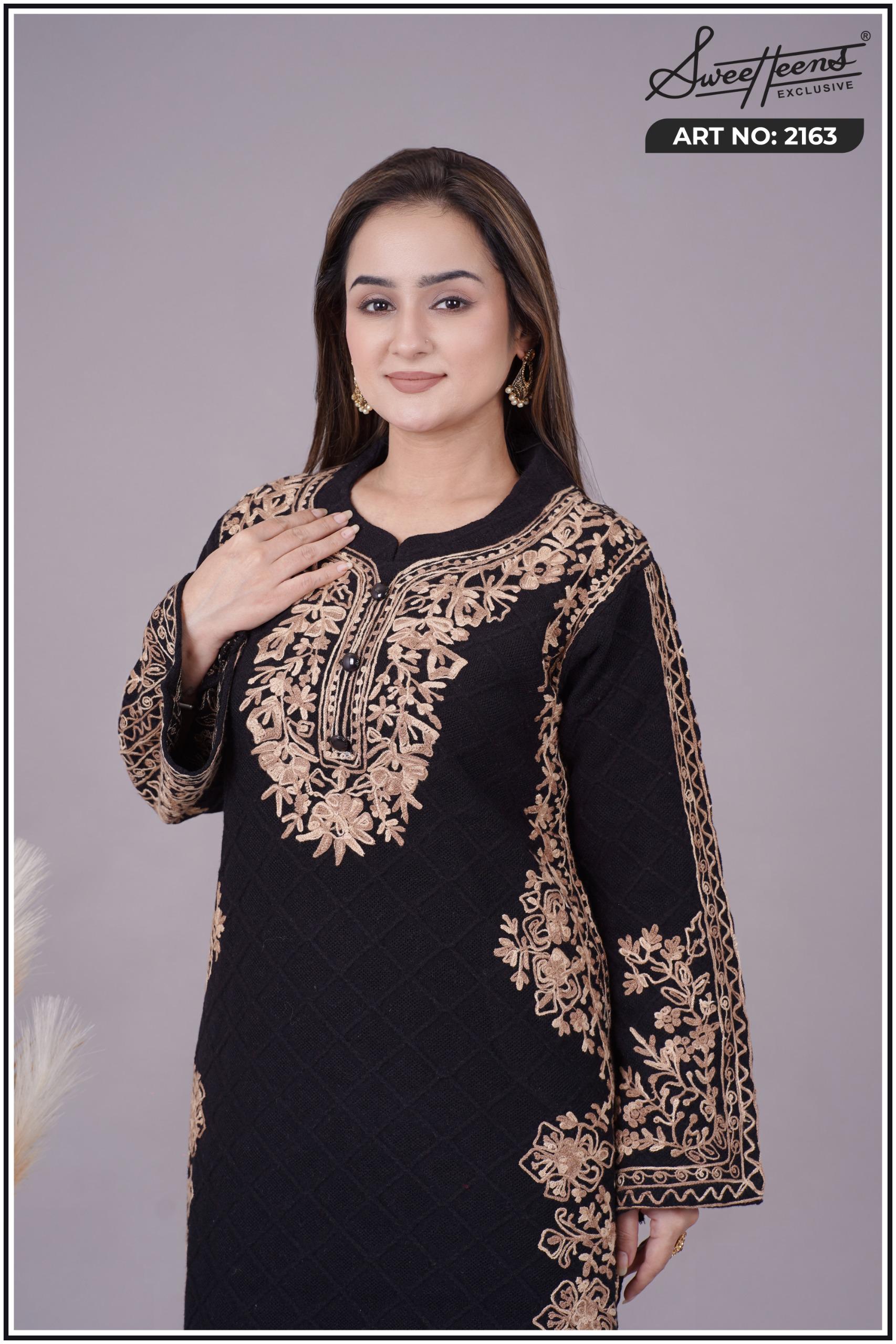 ELEGANT EMBROIDERY KURTI FROM SWEETTEENS EXCLUSIVE FEATURING INTRICATE GOLDEN THREAD WORK ON NECKLINE AND SLEEVES - A PERFECT BLEND OF GRACE AND STYLE FOR FESTIVE AND PARTY WEAR.SWT 2163.