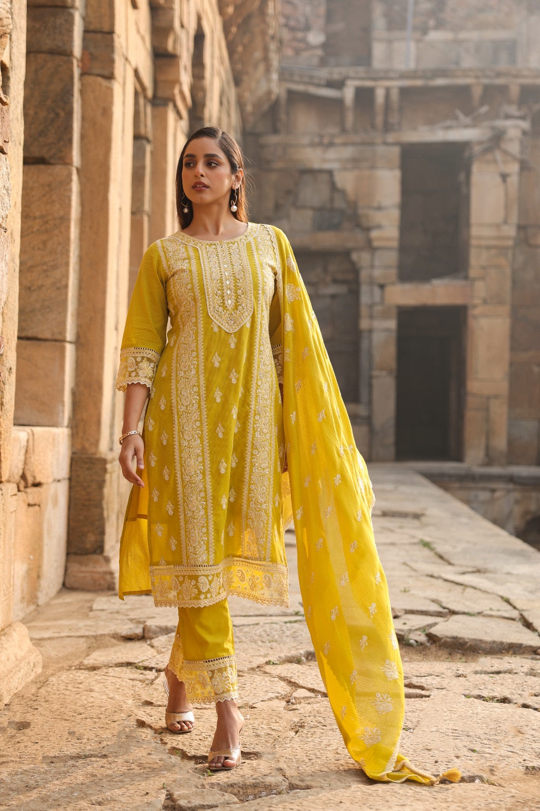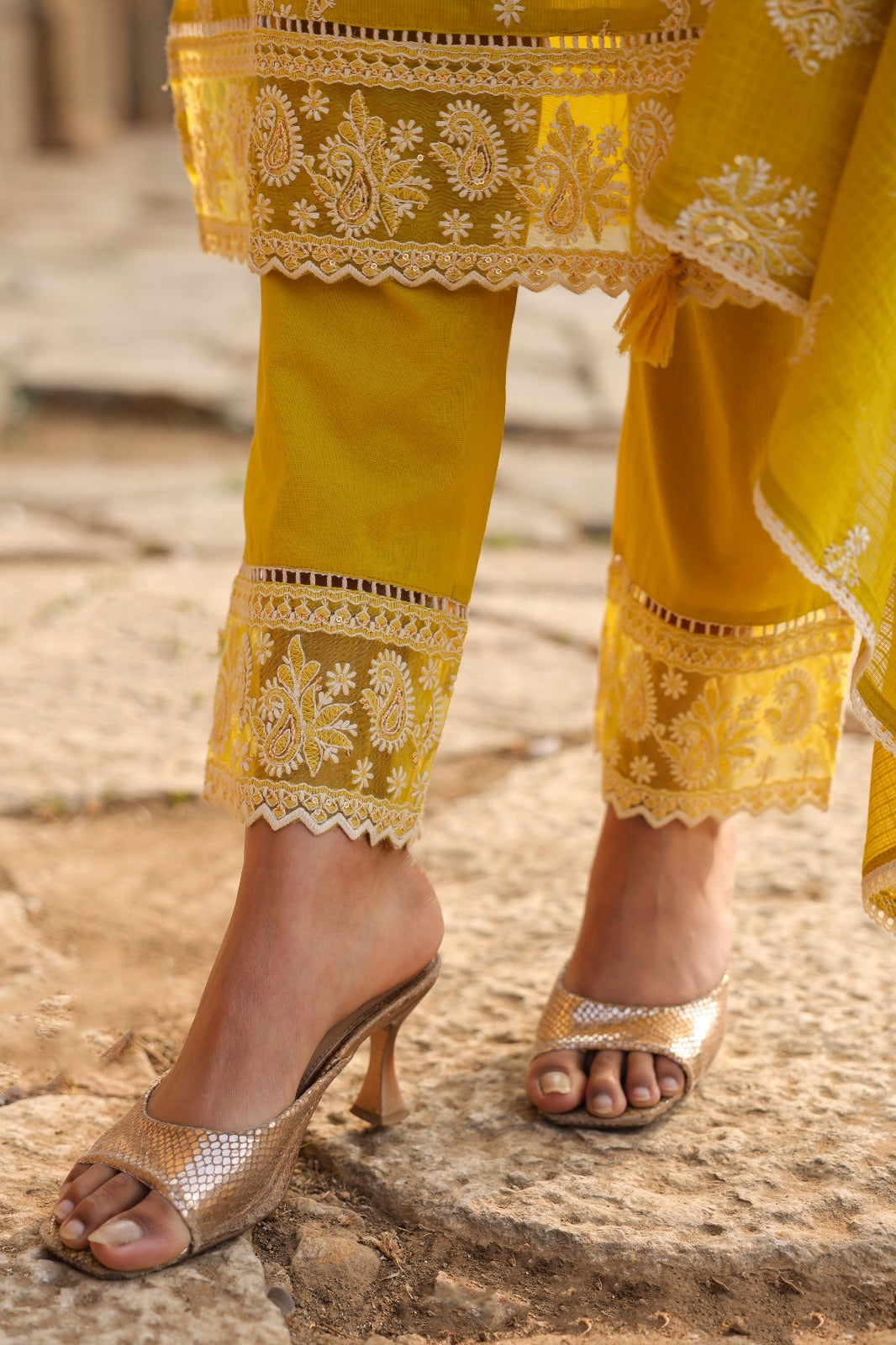 • Kurta: Straight cut with intricate front and sleeve embroidery