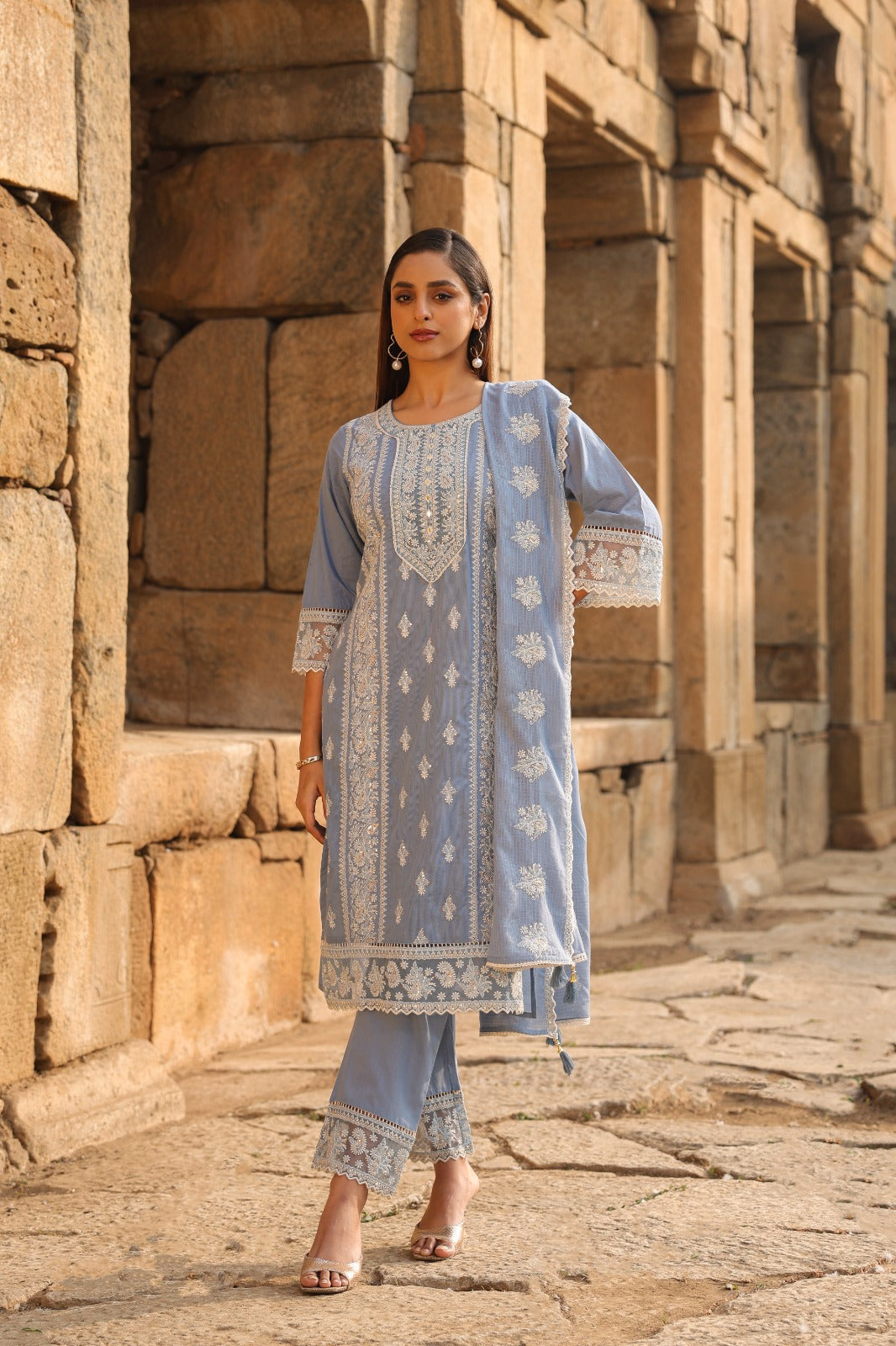 Mulson Mist Blue Embroidered Suit Set